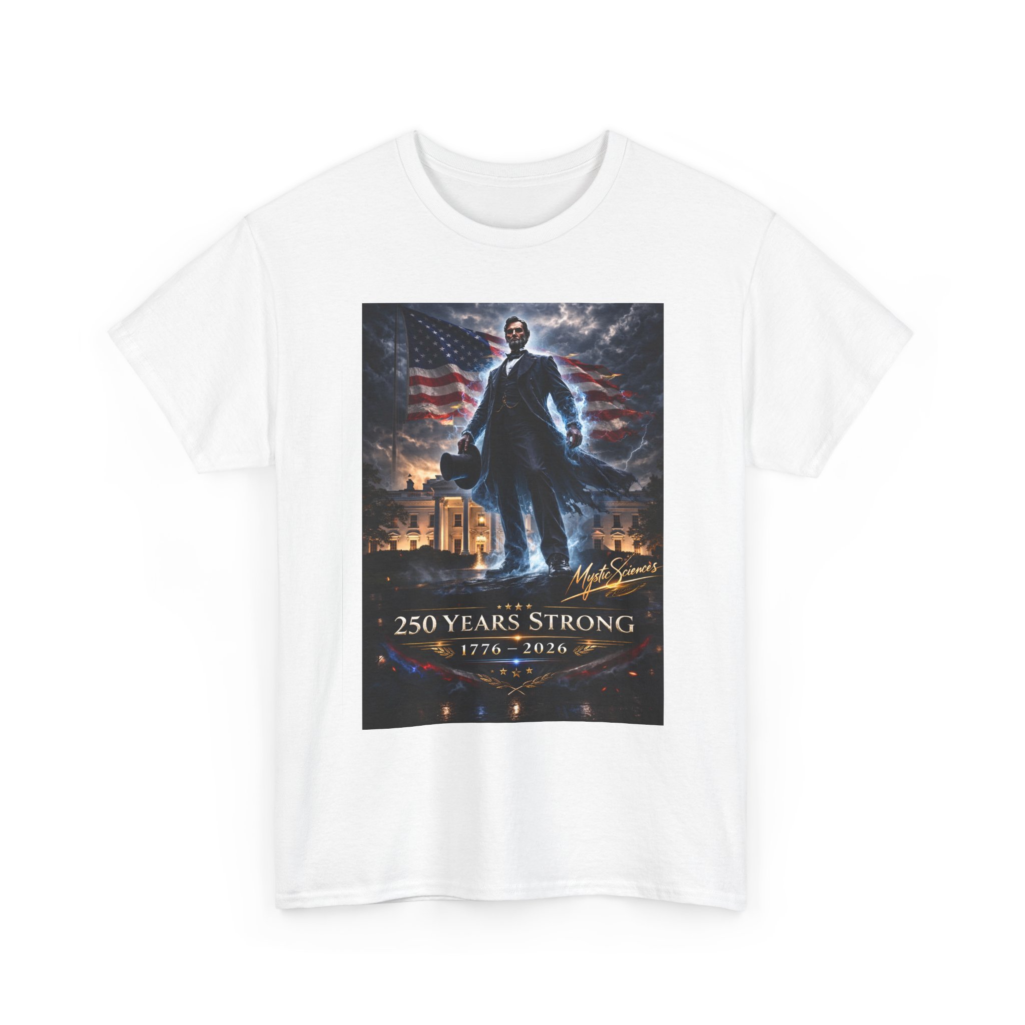 This heavyweight cotton tee carries a bold, cinematic design that evokes history, resilience, and quiet pride. The front art shows a heroic figure standing tall against a storm-lit sky and waving flags, with stately architecture and warm lights below — an image that reads like a modern-day poster celebrating endurance. Wear it to add a dramatic, narrative-driven layer to simple outfits: under a denim jacket, with worn-in jeans, or layered for cooler evenings. The shirt feels substantial and lived-in from the first wear, holding its shape while showcasing sharp, detailed printing.